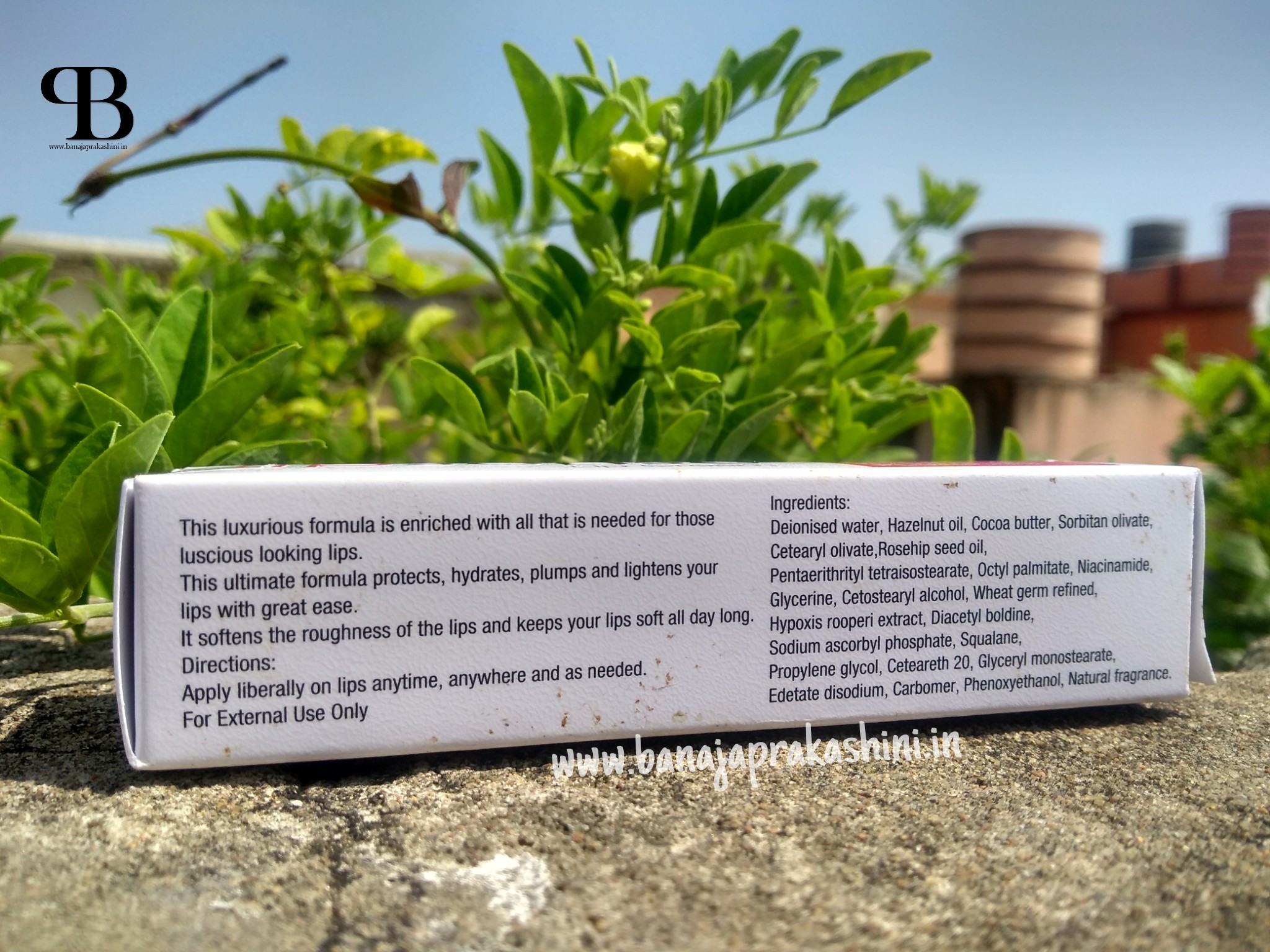 Hydration, yes, it hydrates well enough. I needed to apply it for some 5-6 times a day and I was good to go. A long time after applying the lip cream, I could still feel a waxy coat over it. I tried to wipe it but the feeling still remained with no oily residue on my fingertips. My lips looked full and well moisturized.